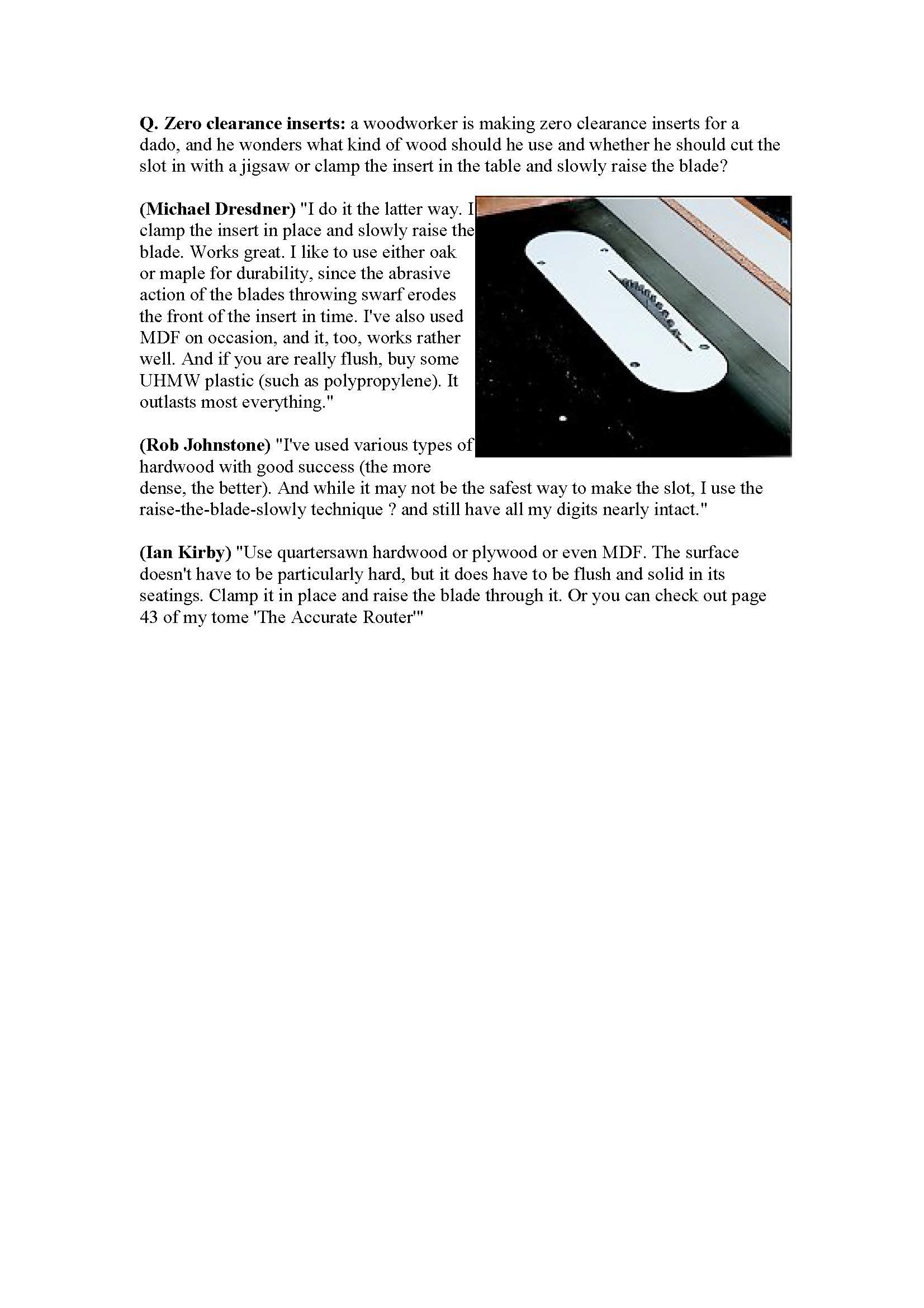 Zero Clearance Inserts